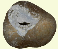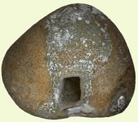 Die Aushöhlung des Steins ist durchgehend vom schreienden zum lachenden Mund (ein "Hühnergott")
